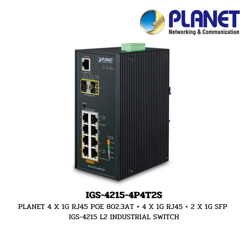 (IGS-4215-4P4T2S) PLANET 4 X 1G RJ45 POE 802.3AT + 4 X 1G RJ45 + 2 X 1G SFP IGS-4215 L2 INDUSTRIAL SWITCH