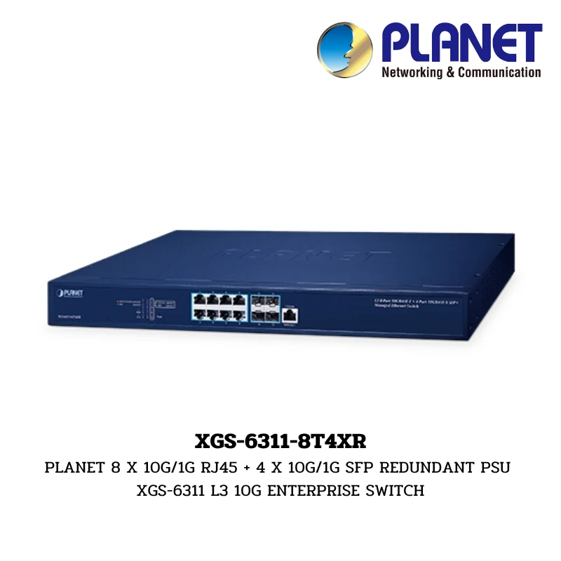 (XGS-6311-8T4XR) PLANET 8 X 10G/1G RJ45 + 4 X 10G/1G SFP REDUNDANT PSU XGS-6311 L3 10G ENTERPRISE SWITCH
