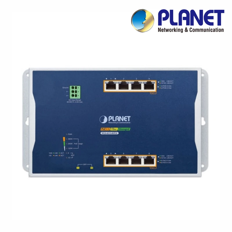 Planet WGS-4215-8HP2S เป็น Industrial Managed Switch ดีไซน์แบบ Flat-type ที่ออกแบบมาเพื่อการติดตั้งในพื้นที่จำกัด เช่น ตู้ควบคุมริมผนัง หรือในช่องว่างระหว่างผนัง มาพร้อมประสิทธิภาพการจ่ายไฟที่เหนือกว่าด้วยพอร์ต 802.3bt PoE++ (90W) จำนวน 4 พอร์ต และพอร์ต 802.3at PoE+ (36W) อีก 4 พอร์ต รวมงบประมาณการจ่ายไฟสูงถึง 360W ตัวเครื่องทนทานต่ออุณหภูมิวิกฤต -40 ถึง 75 องศาเซลเซียส และรองรับระบบเครือข่ายสำรอง ERPS Ring เพื่อความต่อเนื่องของข้อมูลในงานอุตสาหกรรมและระบบรักษาความปลอดภัย