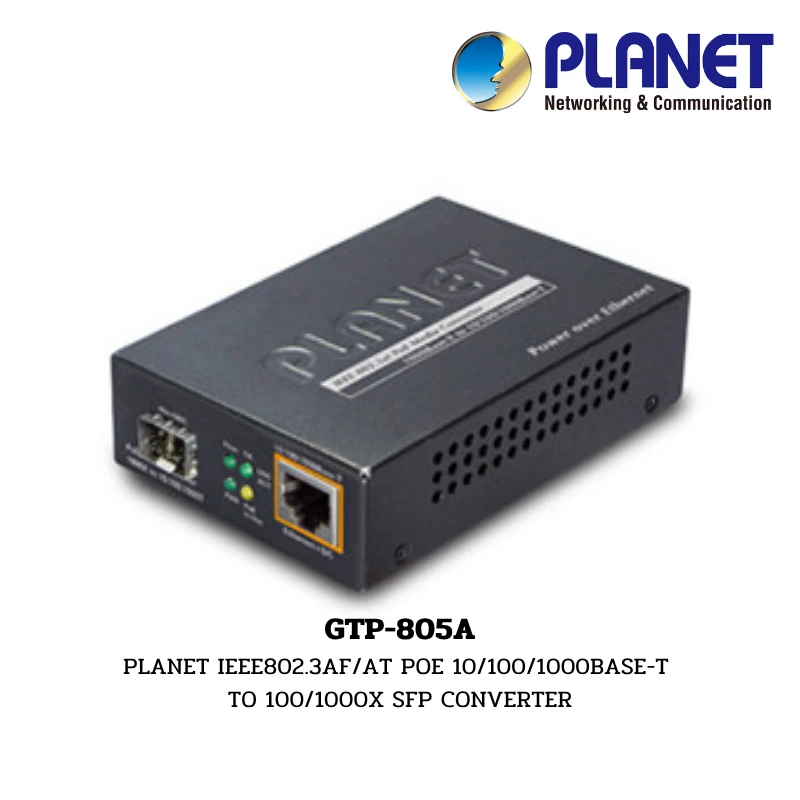 (GTP-805A) PLANET IEEE802.3AF/AT POE 10/100/1000BASE-T TO 100/1000X SFP CONVERTER