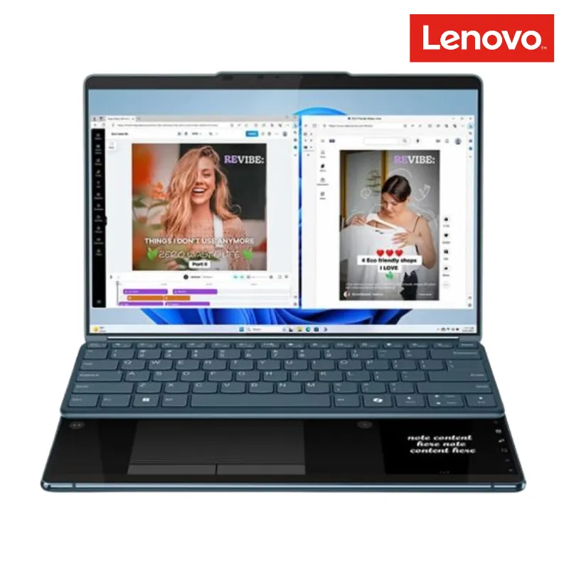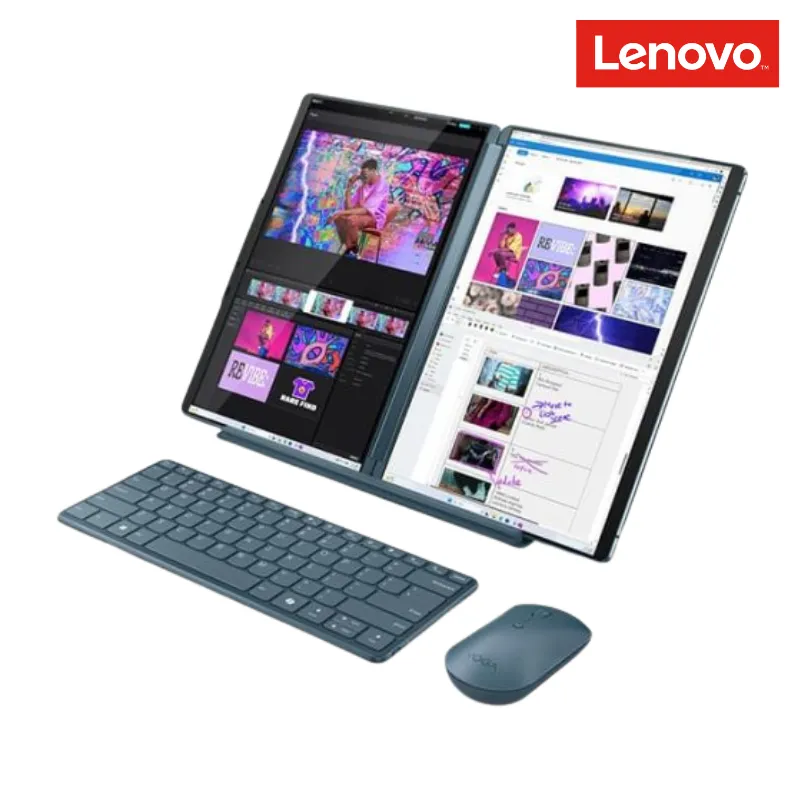 Lenovo Yoga Book 9 13IMU9 รหัส 83FF001TTA คือนวัตกรรมโน้ตบุ๊ก 2 หน้าจอ (Dual Screen) ขนาด 13.3 นิ้วที่เป็นแผงหน้าจอ OLED ทั้งคู่ ให้ความคมชัดระดับ 2.8K และสีสันแม่นยำ 100% DCI-P3 ขับเคลื่อนด้วยโปรเซสเซอร์ Intel Core Ultra 7 155U พร้อมหน่วยความจำสูงถึง 32GB ออกแบบมาเพื่อการทำงานแบบ Multi-tasking ขั้นสูงสุด ไม่ว่าจะใช้ในโหมดแนวตั้ง แนวนอน หรือโหมดแท็บเล็ต มาพร้อมความบางเบาและหรูหรา พร้อมการรับประกัน Premium Care นาน 3 ปีเต็ม