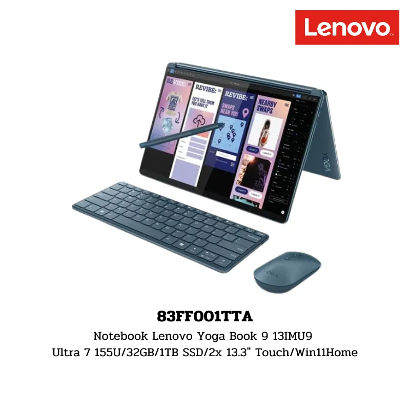 Notebook Lenovo Yoga Book 9 13IMU9 Ultra 7 155U/32GB/1TB SSD/2x 13.3″ Touch/Win11Home (83FF001TTA)