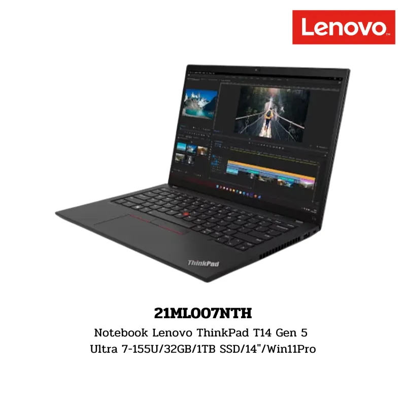 Notebook Lenovo ThinkPad T14 Gen 5 Ultra 7-155U/32GB/1TB SSD/14″/Win11Pro (21ML007NTH)