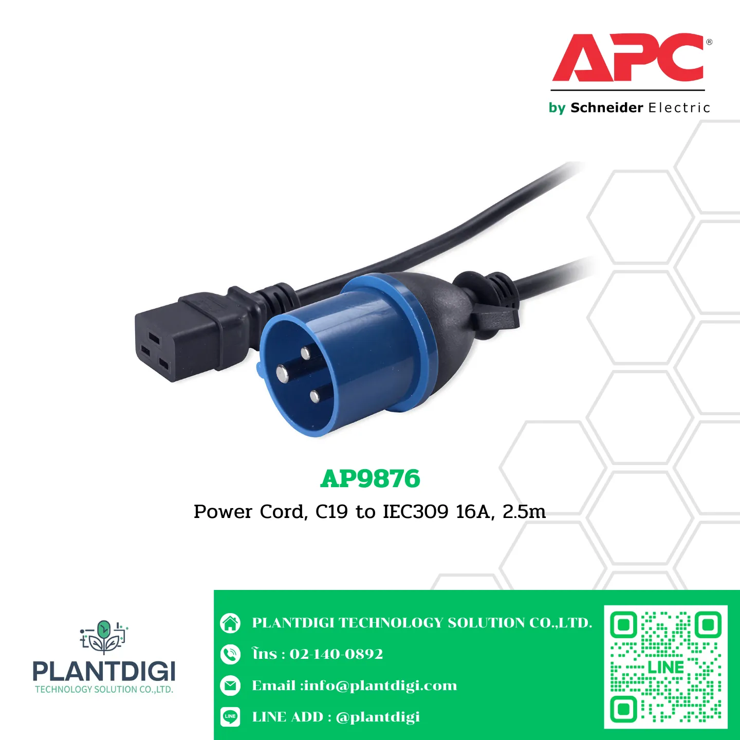 Power Cord, C19 to IEC309 16A, 2.5m