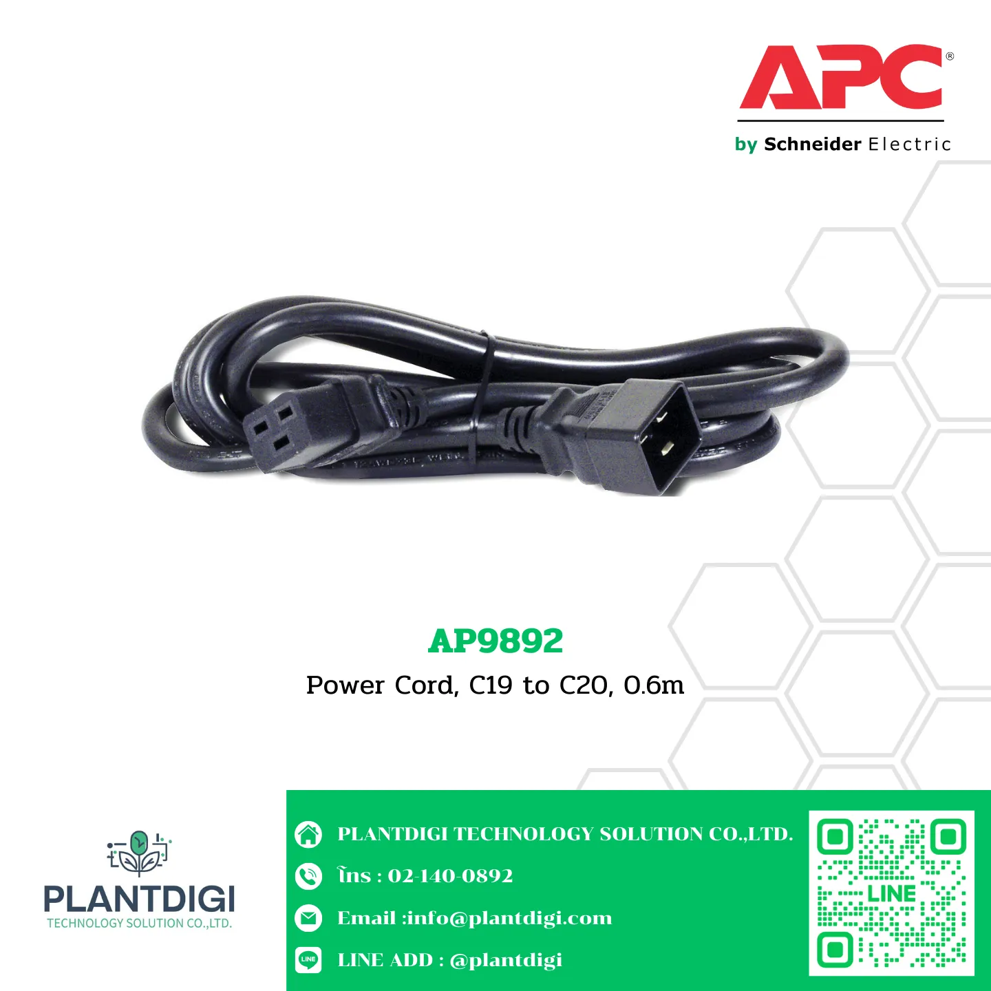 Power Cord, C19 to C20, 0.6m