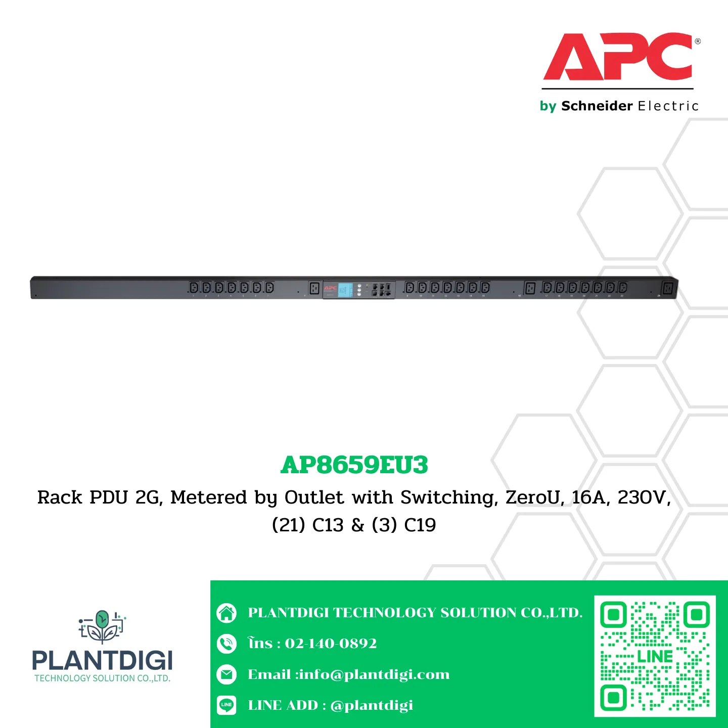 Rack PDU 2G, Metered by Outlet with Switching, ZeroU, 16A, 230V, (21) C13 & (3) C19