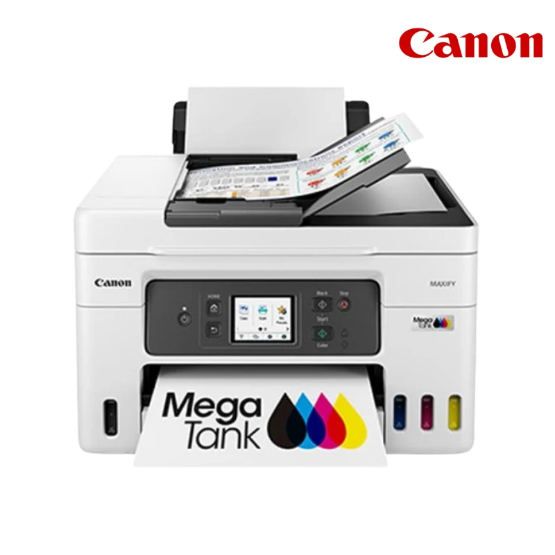 เครื่องพิมพ์มัลติฟังก์ชันระบบแทงค์หมึกเติมแท้แบบ 4-in-1 ระดับพรีเมียมจาก Canon รุ่น MAXIFY GX4070 ที่รวมฟังก์ชัน Print, Copy, Scan และ Fax ไว้ในเครื่องเดียวอย่างสมบูรณ์แบบ มอบงานพิมพ์คุณภาพสูงด้วยหมึกกันน้ำ (Pigment Ink) ทุกสี พร้อมความเร็วในการพิมพ์ที่รวดเร็วถึง 18 / 13 ipm โดดเด่นด้วยถาดป้อนเอกสารอัตโนมัติ (ADF) ระบบพิมพ์สองหน้าอัตโนมัติ และความจุกระดาษรวมสูงสุด 350 แผ่น รองรับการเชื่อมต่อที่ครบครันทั้ง Wi-Fi (Dual-band), Ethernet และการสั่งงานผ่านระบบคลาวด์ ออกแบบมาเพื่อรองรับงานหนักในสำนักงานสูงสุด 33,000 หน้าต่อเดือน พร้อมการรับประกัน 3 years or 50,000 pages