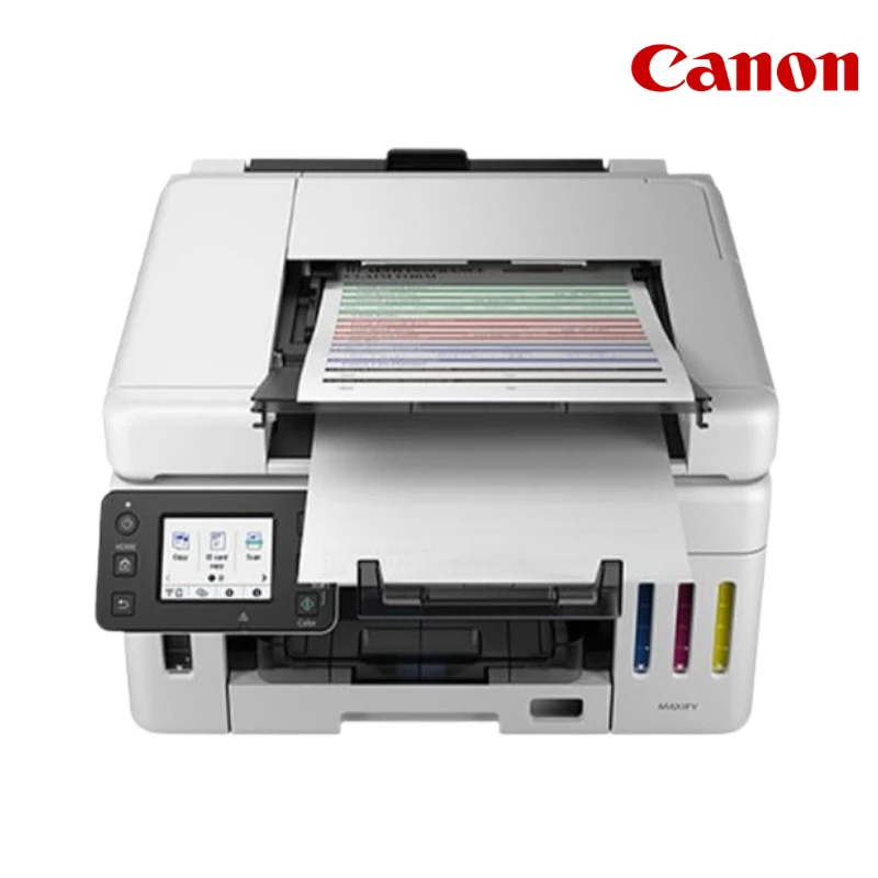 เครื่องพิมพ์มัลติฟังก์ชันระบบแทงค์หมึกเติมแท้ประสิทธิภาพสูงจาก Canon รุ่น MAXIFY GX6570 ที่ออกแบบมาเพื่อตอบโจทย์สำนักงานยุคใหม่ที่ต้องการประหยัดพื้นที่ด้วยดีไซน์ถาดสแกนด้านหน้า (Front-facing ADF) ช่วยให้ใช้งานได้สะดวกแม้ในที่แคบ ครบครันด้วยฟังก์ชัน Print, Copy และ Scan มอบความเร็วในการพิมพ์สูงสุดถึง 24 / 15.5 ipm ใช้หมึกกันน้ำ (Pigment Ink) ทั้ง 4 สี เพื่อความคงทนของเอกสาร รองรับงานหนักด้วย Duty Cycle สูงถึง 45,000 หน้าต่อเดือน และความจุถาดกระดาษรวม 350 แผ่น พร้อมการเชื่อมต่อที่หลากหลายทั้ง Wi-Fi, Ethernet และสั่งพิมพ์ผ่าน USB Flash Memory ได้โดยตรง มั่นใจด้วยการรับประกัน 3 years or 50,000 pages