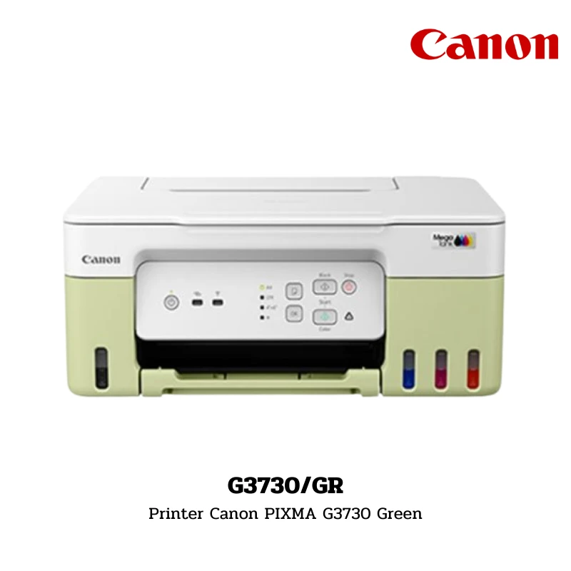 เครื่องพิมพ์มัลติฟังก์ชันระบบแทงค์หมึกเติมแท้แบบไร้สายรุ่นพิเศษในโทนสี Green จาก Canon รุ่น PIXMA G3730 ที่ผสมผสานดีไซน์ที่โดดเด่นเข้ากับฟังก์ชัน Print, Copy และ Scan อย่างลงตัว มอบความเร็วในการพิมพ์สูงถึง 11 / 6 ipm (Mono/Colour) พร้อมความละเอียด 4,800 x 1,200 dpi รองรับการเชื่อมต่อ Wi-Fi เพื่อการสั่งงานที่คล่องตัวผ่านสมาร์ทโฟน ตัวเครื่องบำรุงรักษาง่ายด้วยตลับซับหมึกที่ผู้ใช้สามารถถอดเปลี่ยนเองได้ เหมาะสำหรับผู้ที่ต้องการเครื่องพิมพ์ประสิทธิภาพสูงที่มีสีสันสวยงามเป็นเอกลักษณ์ พร้อมการรับประกัน 2 years or 30,000 pages