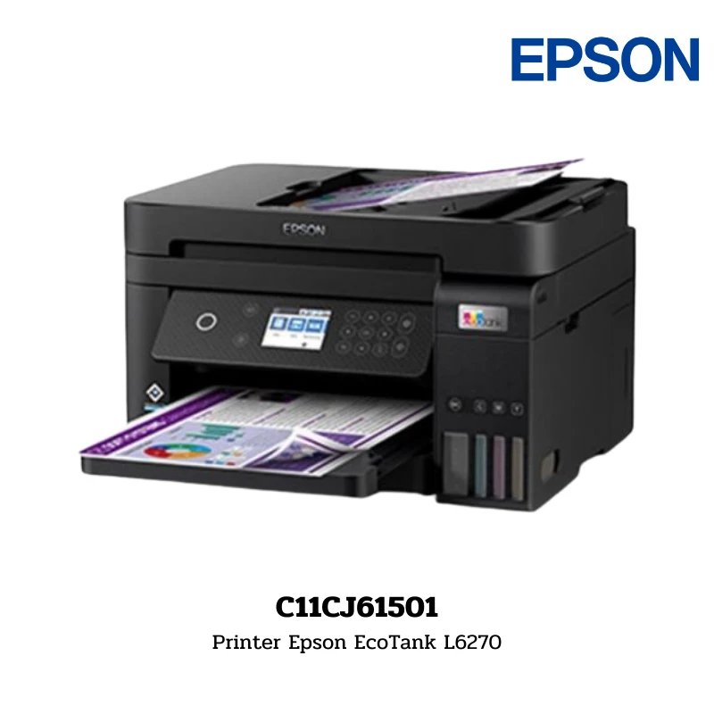 เครื่องพิมพ์มัลติฟังก์ชันระบบถังหมึกแท้ (Ink Tank) ประสิทธิภาพสูงจาก Epson รุ่น L6270 รองรับการทำงานที่หลากหลายทั้ง Print Scan and Copy มอบความเร็วในการพิมพ์ขาว-ดำ Up to 33.0 ppm และพิมพ์สี Up to 20.0 ppm ให้งานพิมพ์ที่มีคุณภาพละเอียดสูงสุดถึง 4800 x 1200 dpi (with Variable-Sized Droplet Technology) มาพร้อมความสะดวกสบายในการเชื่อมต่อที่ครบครันทั้ง USB, Ethernet และ Wi-Fi รองรับขนาดสื่อสิ่งพิมพ์ที่หลากหลายตั้งแต่ภาพถ่ายขนาดเล็กไปจนถึงขนาด Legal และ Indian-Legal ตัวเครื่องมีดีไซน์กะทัดรัดด้วยน้ำหนัก 6.7 kg พร้อมการรับประกันยาวนาน 2 Years