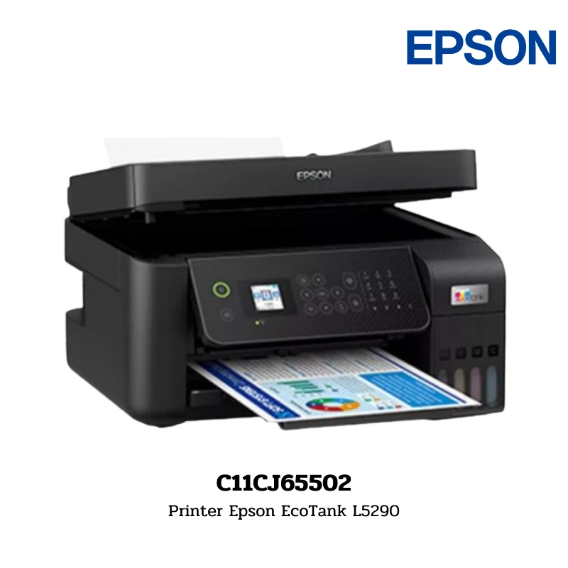 เครื่องพิมพ์มัลติฟังก์ชันระบบถังหมึกแท้ (Ink Tank) ที่ตอบโจทย์การใช้งานในสำนักงานอย่างครบวงจรจาก Epson รุ่น L5290 รองรับฟังก์ชัน Print Scan Copy and Fax ในเครื่องเดียว มอบประสิทธิภาพความเร็วในการพิมพ์ขาว-ดำ Up to 33.0 ppm และพิมพ์สี Up to 15.0 ppm ให้คุณภาพงานพิมพ์ที่ละเอียดคมชัดสูงสุด 5760 x 1440 dpi รองรับการเชื่อมต่อที่หลากหลายและยืดหยุ่นทั้ง USB, Ethernet และ Wi-Fi สามารถใช้งานร่วมกับสื่อสิ่งพิมพ์ได้หลายขนาด ตั้งแต่ภาพถ่ายขนาดเล็กไปจนถึงขนาด Indian-Legal และ Legal ตัวเครื่องมีน้ำหนักเบาเพียง 5.0 Kg พร้อมการรับประกันยาวนาน 2 Years