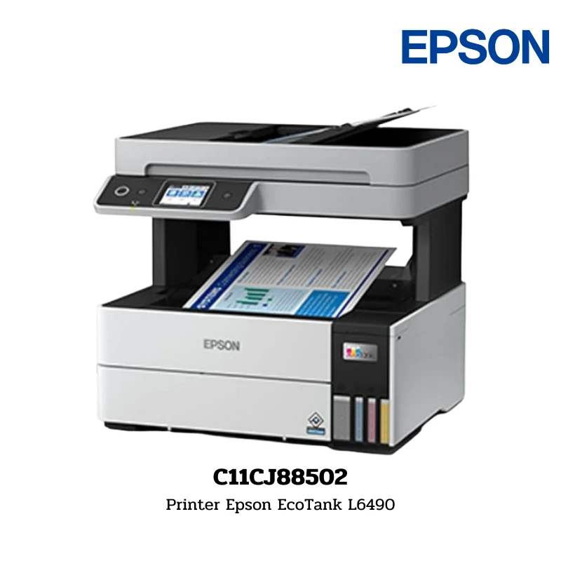 เครื่องพิมพ์มัลติฟังก์ชันระบบถังหมึกแท้ (Ink Tank) ประสิทธิภาพสูงจาก Epson รุ่น L6490 ที่ออกแบบมาเพื่อการใช้งานในสำนักงานอย่างเต็มรูปแบบ รองรับฟังก์ชัน Print Scan Copy and Fax ครบวงจรในเครื่องเดียว มอบความเร็วในการพิมพ์ที่เหนือชั้นด้วย Speed Black Up to 37.0 ppm และ Speed Color Up to 23.0 ppm ให้งานพิมพ์คุณภาพสูงด้วยความละเอียด 4800 x 1200 dpi รองรับการเชื่อมต่อที่สมบูรณ์แบบทั้ง USB, Ethernet และ Wi-Fi สามารถใช้งานร่วมกับสื่อสิ่งพิมพ์ได้หลากหลายขนาด ตั้งแต่ภาพถ่ายขนาดเล็กไปจนถึงขนาด Legal และ Indian Legal ตัวเครื่องมีน้ำหนัก 7.3 kg พร้อมการรับประกันยาวนาน 2 Years