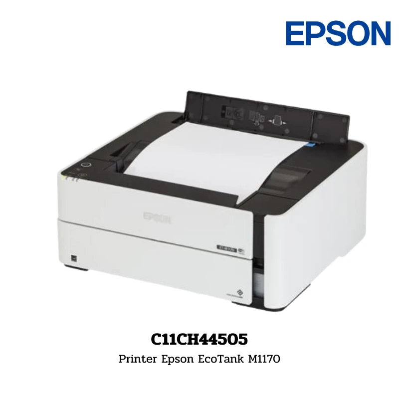 เครื่องพิมพ์ระบบถังหมึกแท้ขาว-ดำ (Monochrome Ink Tank) ประสิทธิภาพสูงจาก Epson รุ่น EcoTank Monochrome M1170 เน้นฟังก์ชันการพิมพ์เพียงอย่างเดียว (Print Only) ที่มีความรวดเร็วสูงถึง 39 pages/min Monochrome ให้งานพิมพ์คุณภาพละเอียด 1,200 x 2,400 dpi โดดเด่นด้วยฟังก์ชัน Automatic 2-sided พิมพ์สองหน้าอัตโนมัติ ช่วยประหยัดกระดาษ รองรับการเชื่อมต่อที่ครอบคลุมทั้ง USB 2.0, Ethernet และ Wi-Fi IEEE 802.11b/g/n สามารถใช้งานกับสื่อสิ่งพิมพ์ได้หลากหลายขนาด ตั้งแต่ซองจดหมายไปจนถึงขนาด Legal และ Indian-Legal (215 x 345 mm) ตัวเครื่องมีน้ำหนัก 4.4 kg พร้อมความมั่นใจด้วย 4 Years Warranty