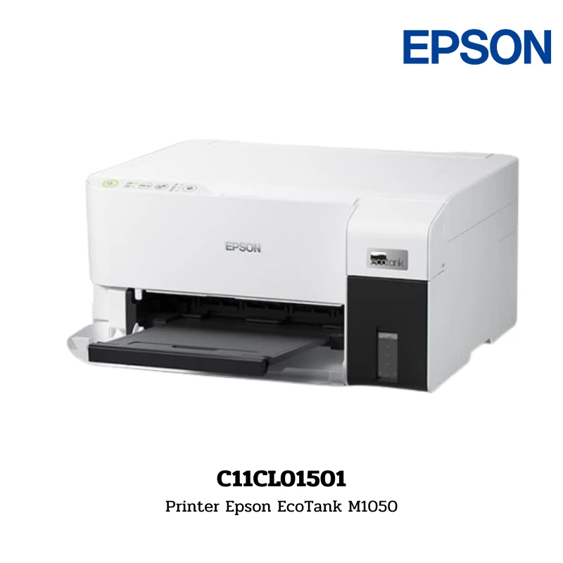 เครื่องพิมพ์ระบบถังหมึกแท้ขาว-ดำ (Monochrome Ink Tank) ประสิทธิภาพสูงจาก Epson รุ่น EcoTank M1050 เน้นฟังก์ชันการพิมพ์ (Print) ที่ให้ความละเอียดสูงสุด 1200 x 2400 dpi (with Variable-Sized Droplet Technology) มอบความเร็วในการพิมพ์ขาว-ดำที่ A4: 18.0 ipm รองรับการเชื่อมต่อที่ครบครันทั้ง USB 2.0, Wi-Fi และ Ethernet (Wi-Fi IEEE 802.11b/g/n) สามารถจัดการสื่อสิ่งพิมพ์ได้หลากหลายขนาด ตั้งแต่ซองจดหมายไปจนถึงขนาด Legal และ Indian-Legal ตัวเครื่องมีดีไซน์กะทัดรัดน้ำหนักเพียง 3.4 kg พร้อมความคุ้มครองที่ยาวนานด้วยการรับประกัน 4 Years