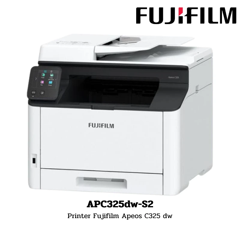 เครื่องพิมพ์มัลติฟังก์ชันเลเซอร์สี (Color LED MFP) ขนาดกะทัดรัดจาก FUJIFILM รุ่น Apeos C325 dw ที่รวมฟังก์ชัน Print, Scan และ Copy ไว้ในเครื่องเดียวอย่างลงตัว มอบงานพิมพ์สีสันสดใสด้วยเทคโนโลยี LED ความละเอียดสูง 600 x 2400 dpi รองรับความเร็วในการพิมพ์และถ่ายเอกสารสูงสุดถึง 31 ppm ทั้งขาวดำและสี ขับเคลื่อนด้วยหน่วยความจำ 512 MB และ CPU 667 MHz พร้อมระบบพิมพ์สองหน้าอัตโนมัติ (Auto Duplex) เชื่อมต่อได้สมบูรณ์แบบทั้ง Wi-Fi, Gigabit Ethernet และ USB 2.0 เหมาะสำหรับสำนักงานที่ต้องการความคล่องตัวและงานพิมพ์คุณภาพระดับมืออาชีพในพื้นที่จำกัด มั่นใจด้วยการรับประกันยาวนาน 3 Years