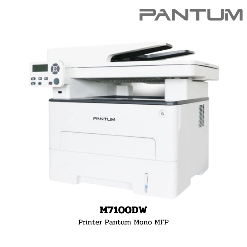 เครื่องพิมพ์มัลติฟังก์ชันเลเซอร์ขาวดำ (Mono MFP) แบบ 3-in-1 จาก Pantom รุ่น M7100DW ที่ออกแบบมาเพื่อการทำงานที่รวดเร็วและมีประสิทธิภาพสูงสุดในสำนักงาน โดดเด่นด้วยความเร็วในการพิมพ์ 33 ppm (A4) และระบบพิมพ์สองหน้าอัตโนมัติ (Auto Duplex) มาพร้อมถาดป้อนเอกสารอัตโนมัติ (ADF) ความจุสูงถึง 50 แผ่น ช่วยให้การสแกนและถ่ายเอกสารจำนวนมากทำได้อย่างง่ายดาย เชื่อมต่อได้อย่างสมบูรณ์แบบทั้ง Wi-Fi, Ethernet และ USB 2.0 รองรับวัสดุการพิมพ์ที่หลากหลายและมีโครงสร้างที่ทนทานต่อการใช้งานหนัก มั่นใจด้วยการรับประกันยาวนาน 3 Years onsite
