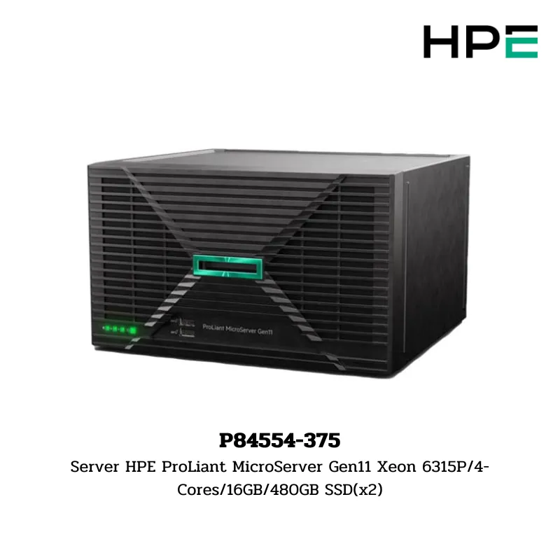 HPE ProLiant MicroServer Gen11 รหัส P84554-375 เซิร์ฟเวอร์ขนาดเล็กที่มาพร้อมประสิทธิภาพที่เหนือกว่าด้วยหน่วยประมวลผล Intel Xeon 6315P ที่ทำความเร็วได้สูงสุดถึง 5.2 GHz และติดตั้งหน่วยจัดเก็บข้อมูลแบบความเร็วสูง 480GB SSD จำนวน 2 ลูก เหมาะสำหรับงานที่ต้องการการอ่านข้อมูลที่รวดเร็ว (Read Intensive) ในรูปทรง Ultra Micro Tower ที่ประหยัดพื้นที่