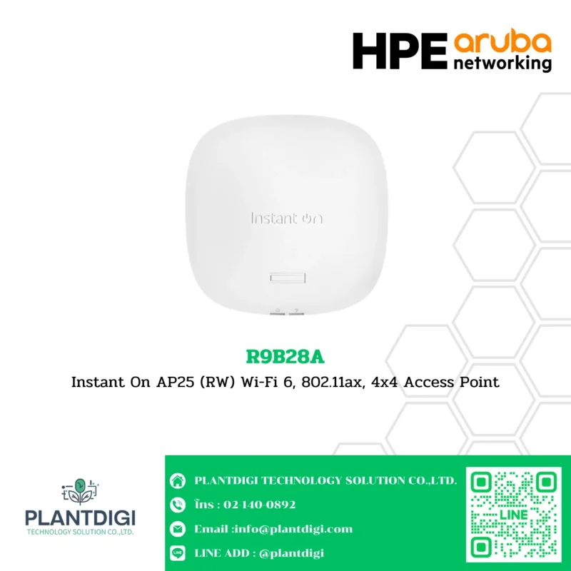 The HPE Networking Instant On Indoor Access Point Wi‑Fi 6 4×4 (RW) AP25 is designed to deliver a reliable, affordable, and high-performance 802.11ax Wi-Fi experience for high-density small business environments, such as hotels, restaurants, and professional offices. Supporting Wi-Fi 6, this access point can handle a peak data rate of up to 4.8 Gbps, making it ideal for demanding network usage.