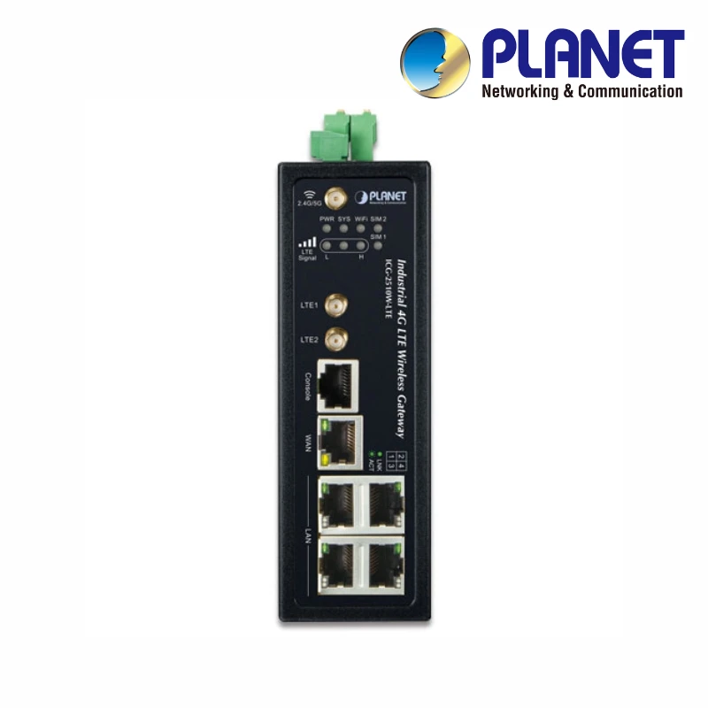 (ICG-2510W-LTE) PLANET 4G LTE CELLULAR WIRELESS INDUSTRIAL GATEWAY WITH 5-PORT 10/100/1000T
