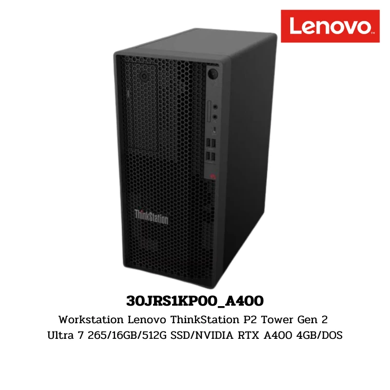 Lenovo ThinkStation P2 Tower Gen 2 รหัส 30JRS1KP00_A400 เวิร์กสเตชันรุ่นล่าสุดที่มาพร้อมเทคโนโลยีซีพียู Intel Core Ultra 7 265 ซึ่งมี NPU ในตัวช่วยประมวลผลงานด้าน AI ติดตั้งแรมความเร็วสูง 16GB DDR5-5600 และกราฟิกการ์ด NVIDIA RTX A400 4GB รุ่นใหม่ รองรับการเชื่อมต่อมาตรฐานล่าสุดทั้ง Wi-Fi 7 และพอร์ต USB-C 20Gbps มาพร้อมระบบปฏิบัติการ DOS และการรับประกันระดับพรีเมียม 3 Years Premier Support